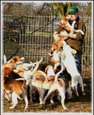 * Schleppjagd * Meutejagd * Parforcejagd Allgemeines zur Hetzpeitsche Hunde dürfen vor der Peitsche keine Angst haben, sonst sind sie vom Pferd aus nicht zu führen. Sie dient zur Kommunikation. Jeder Hund wird mit seinem Namen angesprochen: hört er nicht, wird zur Warnung geknallt. Dies reicht in der Regel, nur bei Ungehorsam wird der Hund mit dem Schmitz touchiert. Er ist aus Hanf geflochten und am Schlagende zum Knallen angebracht. Wer nicht bei den Hunden reitet, wickelt den Schlag auf ! |